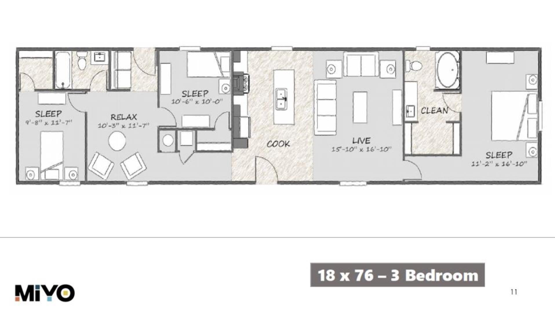 Welcome to your new Texas Single-wide by Clayton Miyo Bonham The “MIYO Balance“. The MIYO Balance has 3 Bedrooms, 2 bathrooms and spans 1368 square feet, offering a comfortable and versatile living space. With a width of 18 feet and a length of 76 feet, this home provides a balanced layout suitable for various locations and lifestyles.